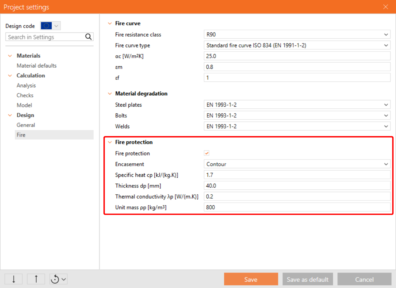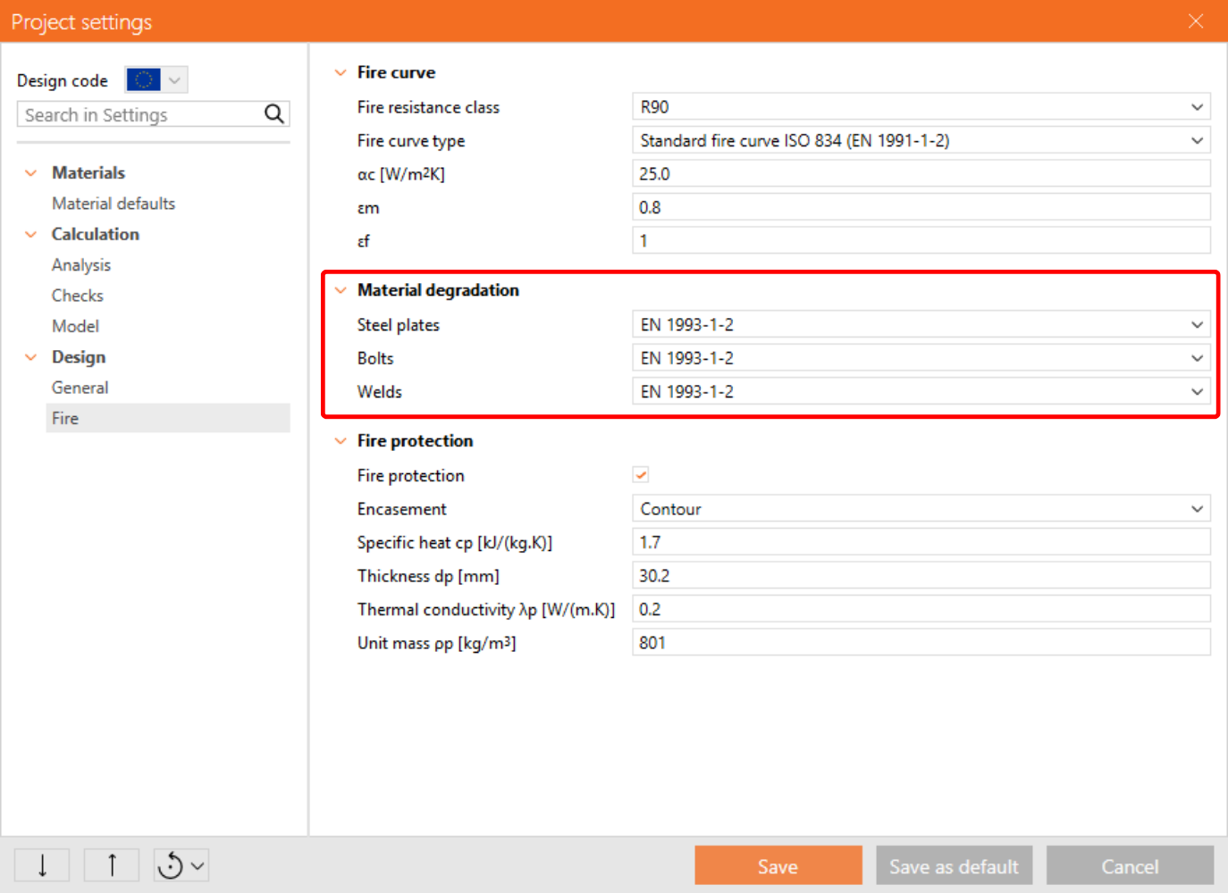 3 Fire design settings