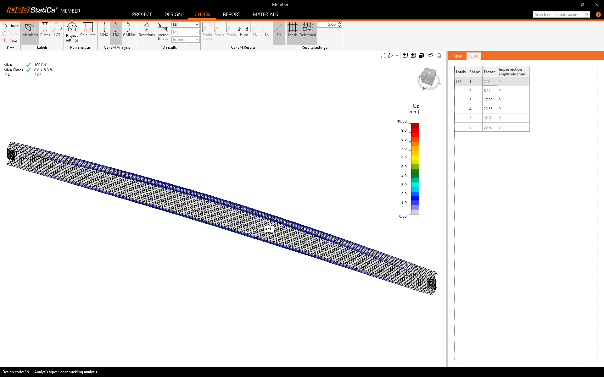 Fill the imperfection fields according to the following image. And run GMNIA calculation.
