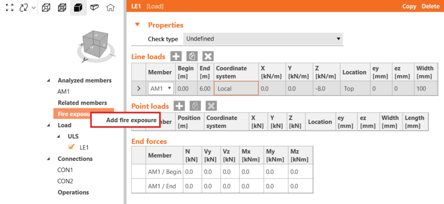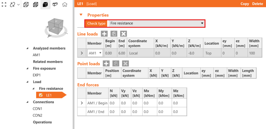 Also, we need to set the Load properties and change the Check type to Fire Resistance.