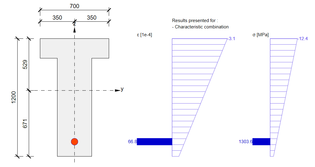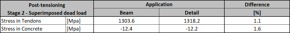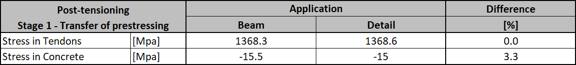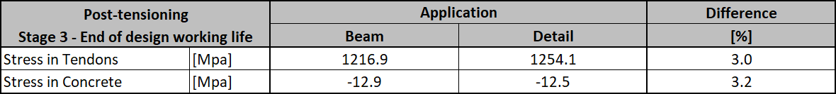 Again, there is a good match. So, it seems we have done the input for this stage correctly. For ULS there will be the same issue described in the previous stage. Note that the coefficients rinf and rsup defined in EN 1992-1-1; 5.10.9 (1) was set as 1.0 in the Beam application.