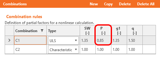 If you create a combination containing load cases of all load types, the whole portion of Prestressing load type will be applied in the first increment P, the whole portion of Permanent load type will be applied in the second increment G, and the whole portion of Variable load type will be applied in the third increment V.