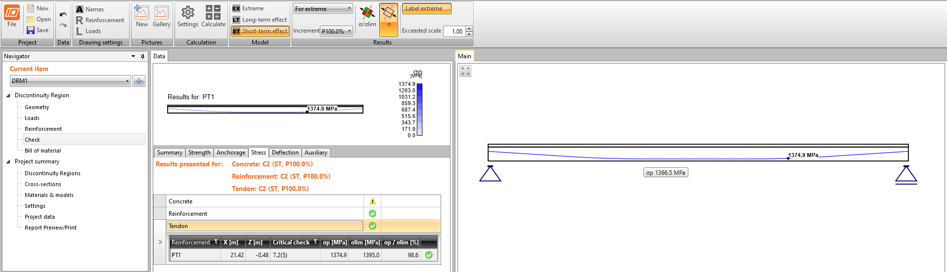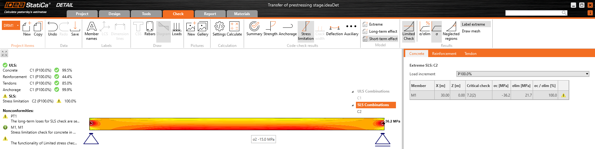 Now you know how to use the Detail app for the design of prestressed concrete structures using post-tensioned tendons for the Transfer of prestressing stage. Just change the geometry and add some discontinuities like openings, etc.