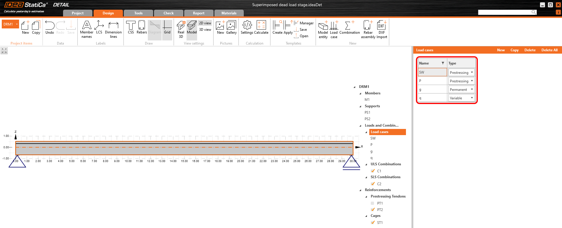 In the case of post-tensioned tendons, you can input the prestressing effect in Detail in two ways.