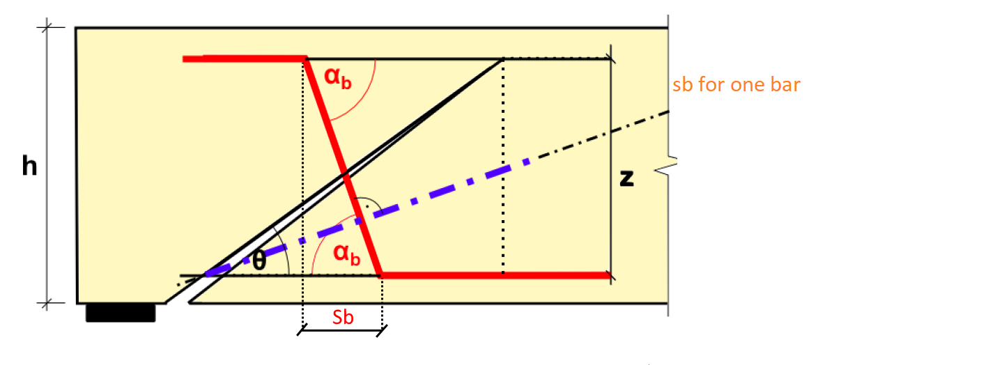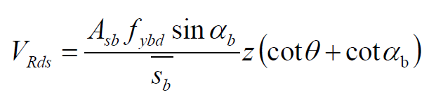 The shear resistance of bent-up bars is defined by the following equation. If we use the unequal distance between the layers of bent-up bars, distance sb is averaged and used in the same equation.
