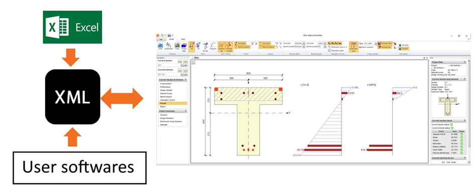 IOM (IDEA open model) was extended by the data for check of the reinforced and prestressed cross-sections using the RCS application. The interface of the program contains almost all data used in the RCS application. At the same time, the library where the user can call the third-party applications and launch the checks and read the check results was created. Results are in the IOM format.