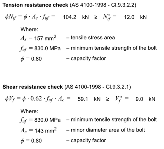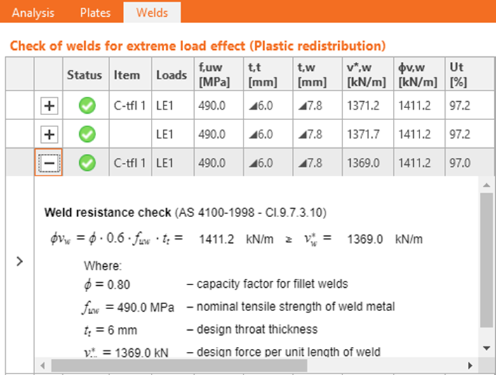 • Code checks – All code checks for plates, welds, bolts, and anchors, etc. according to AU code were implemented.