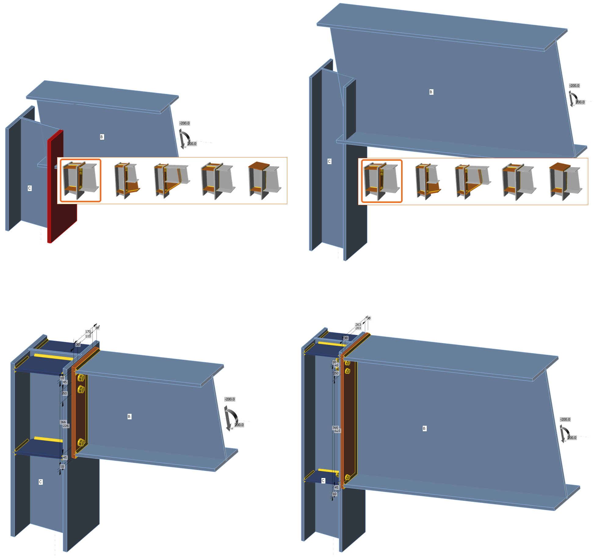 All these templates are accessible by right-clicking on one of the members. Thus, we have instant choice parametric templates which can be combined in complex joints made from several connections.