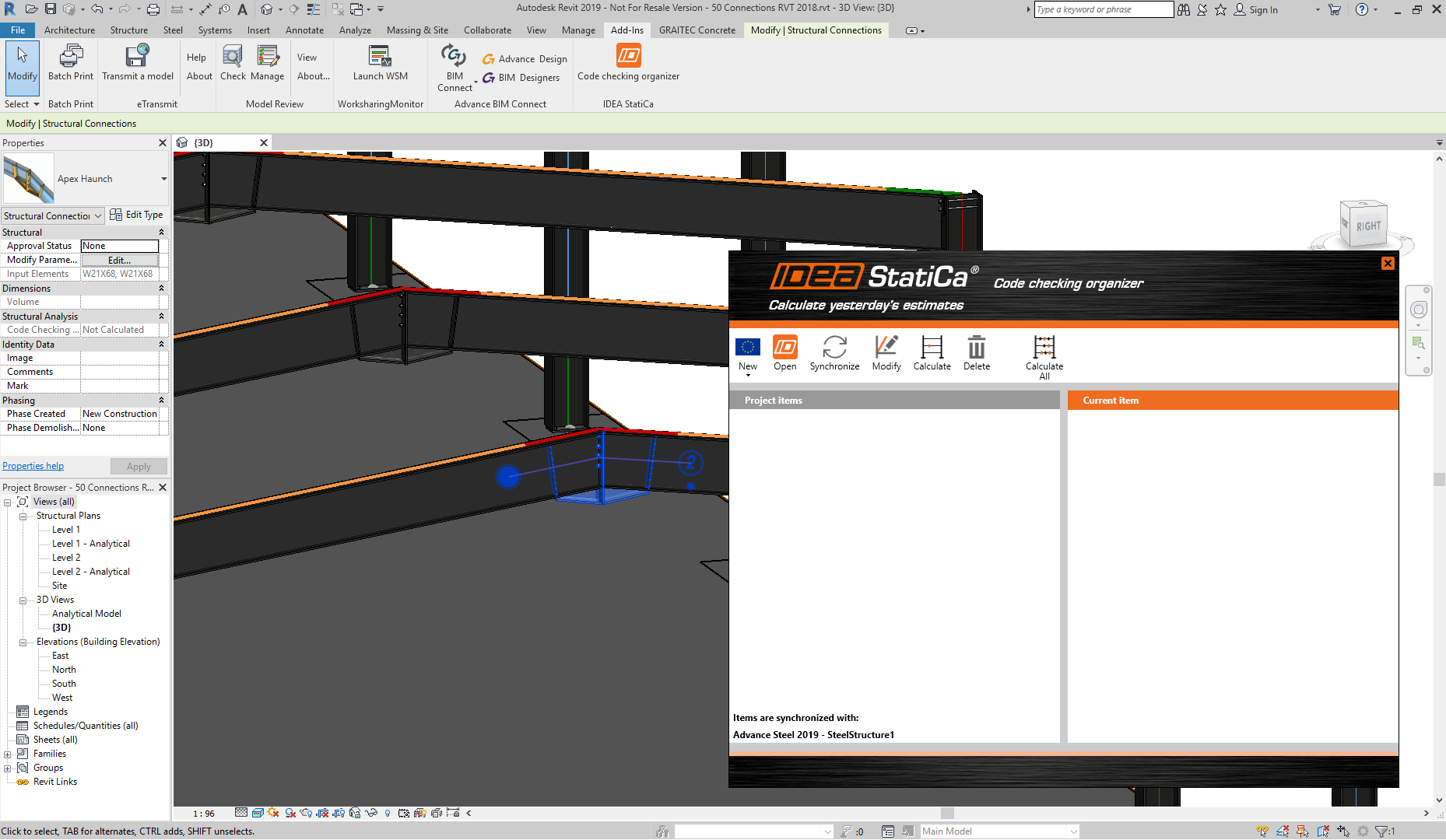 The new BIM link for Autodesk Revit 2019 is the most powerful IDEA StatiCa BIM link so far. The structural model with all designed connection entities and the analysis model can all be imported in one step.