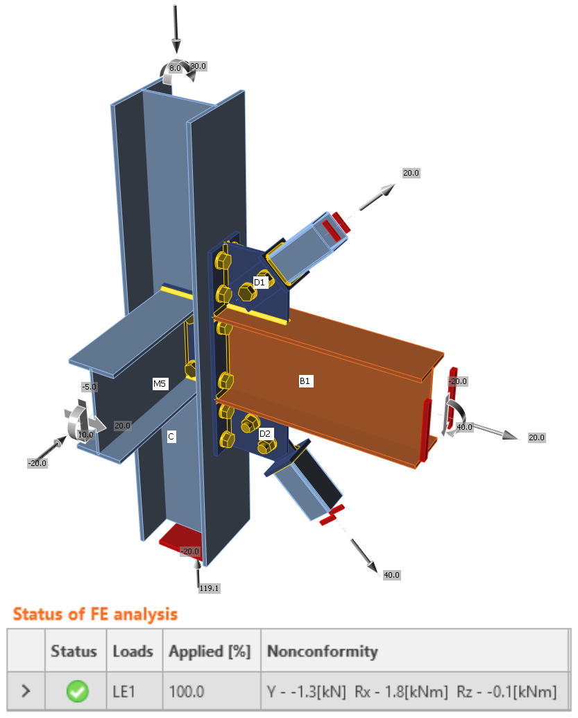 • We export it to IDEA StatiCa, input loads, and perform a code-check