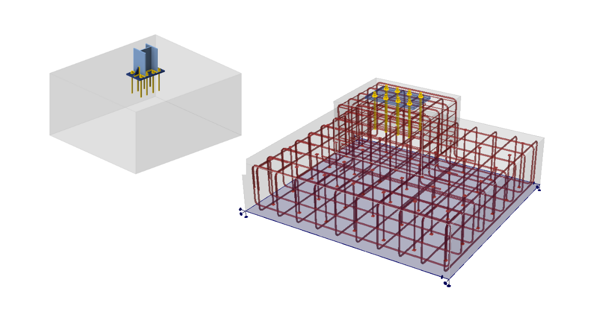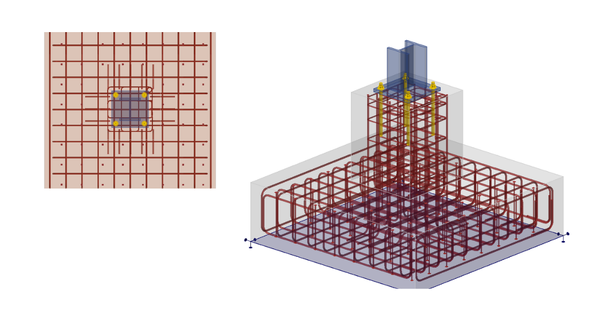 Anchoring into staged footing and design of reinforcement