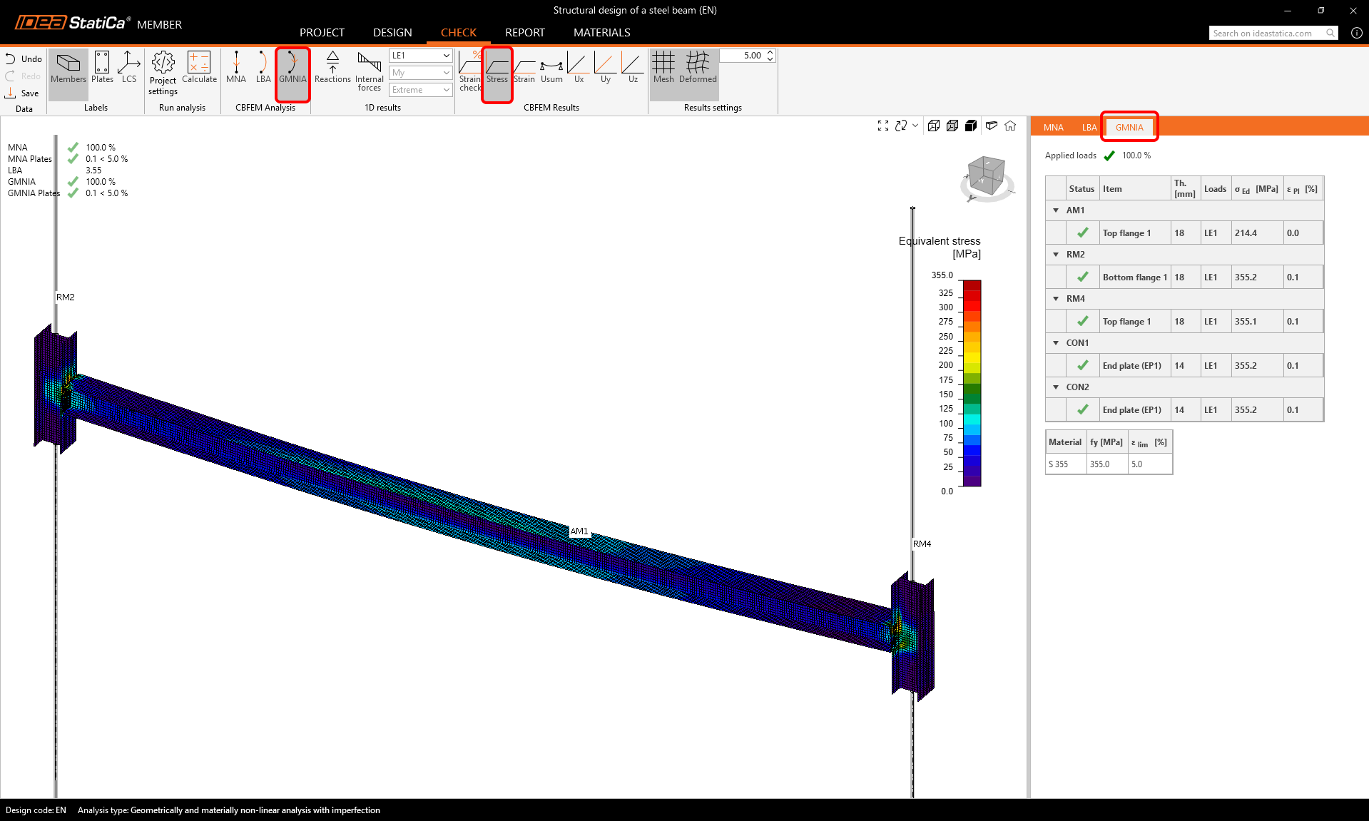 Start the Geometrically and Materially Nonlinear Analysis with Imperfection (GMNIA) calculation by selecting GMNIA and clicking Calculate.