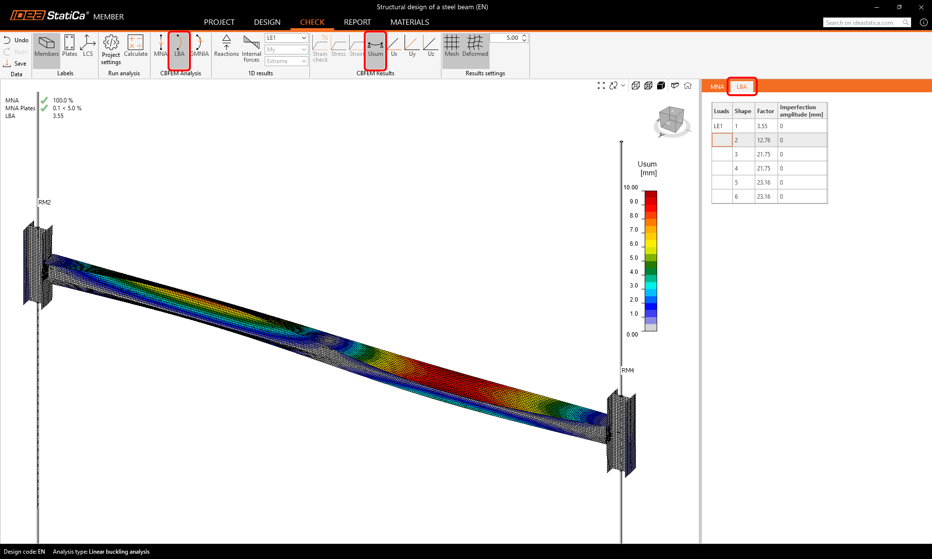 The second step is to perform the Linear Buckling Analysis (LBA) and click Calculate