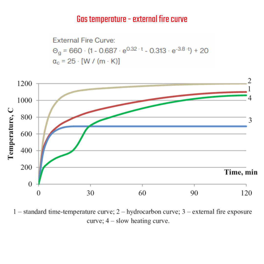 El Eurocódigo define varias curvas nominales de fuego temperatura-tiempo utilizadas en el diseño estructural contra incendios: