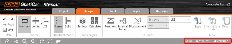 Wireframe view & result interpretation of concrete members