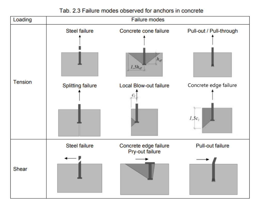 Figure 5: Scheme of failure modes – Design of Steel-to-Concrete Joints Design Manual II
