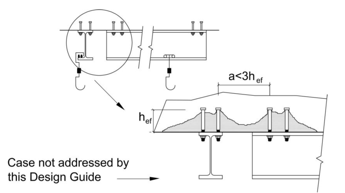 Another problem arises when concrete cones interact with each other – Eurocode and other literature (fib bulletin 58) only give conditions for when and how these cones can be checked separately.