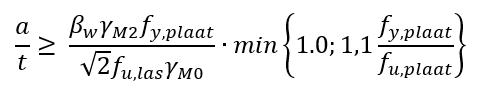 | S275 | 0,70 | a ≥ 0,34 ∙ t |