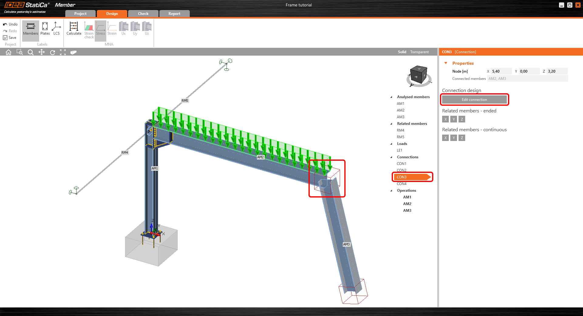 Puis sélectionnez l'assemblage CON2 et éditez-le dans le module IDEA StatiCa Connection.