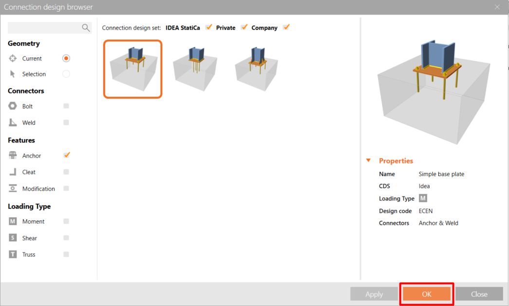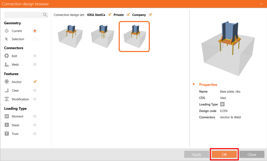 Cliquez sur le bouton droit de votre souris sur l'élément et sélectionnez la conception d'ancrage du pied de poteau avec des raidisseurs.