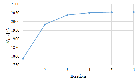 The following iterations are shown in the form of a graph. It can be seen that the three iterations are usually enough and the design compressive resistance does not rise significantly afterward.