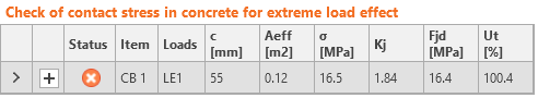 Concrete in compression determined by CBFEM is compared with the manual calculation according to EN 1993-1-8 and EN 1992-1-1.
