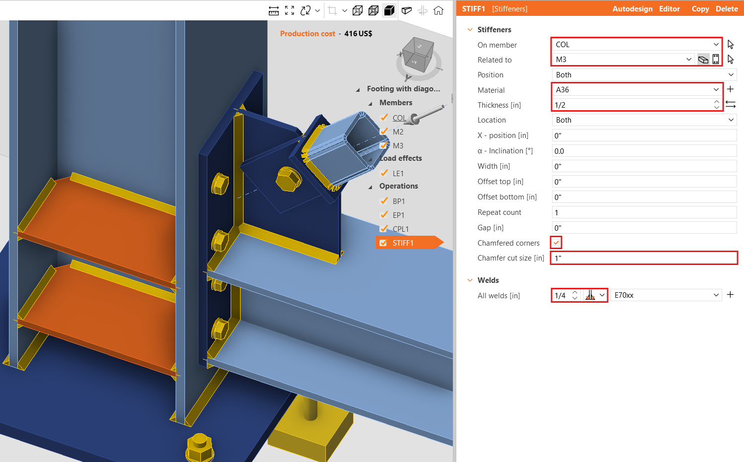 L'opération de fabrication Pied de poteau a déjà été ajoutée. Actualisez quelques de ses attributs.