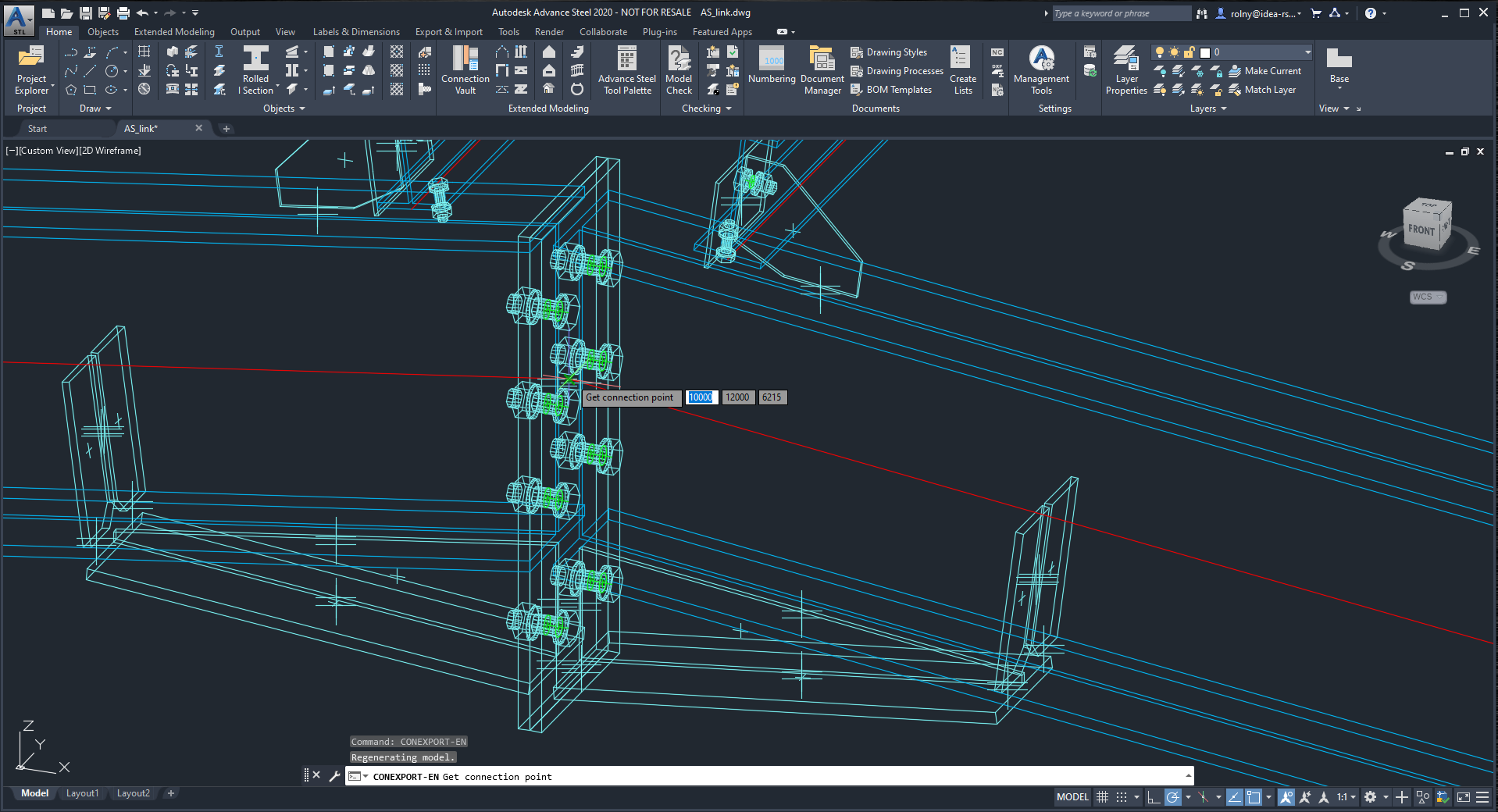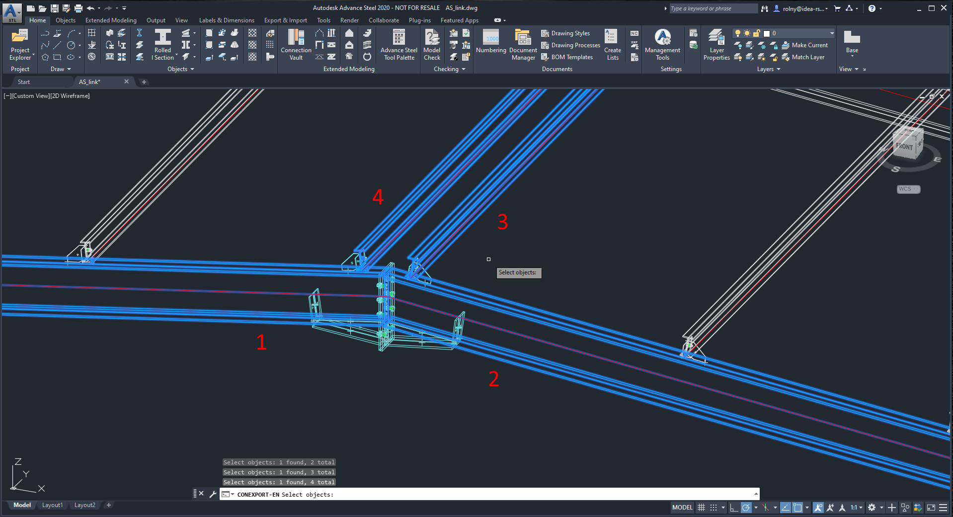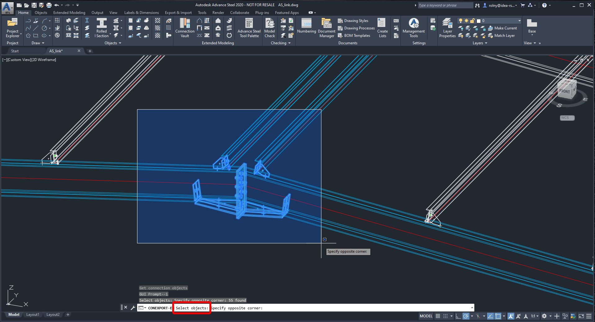 Open the project in Autodesk Advance Steel, design the steel connection (or you can use the attached file).
