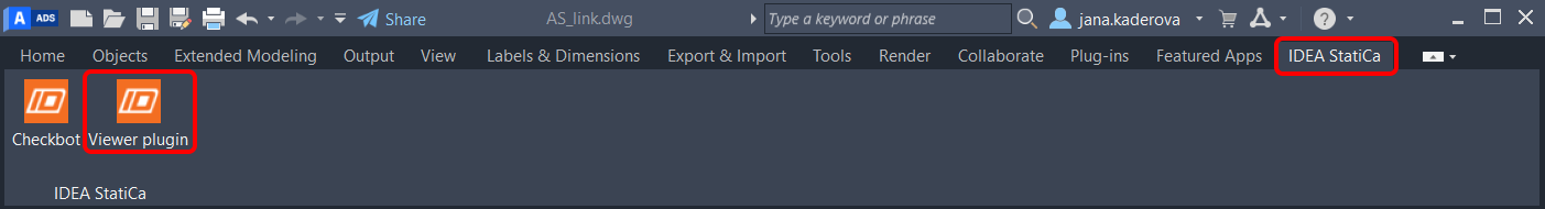 You will now see a new IDEA StatiCa tab in the top ribbon that has 2 buttons: