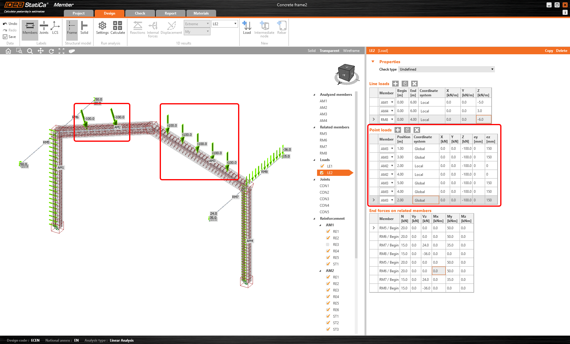 - The load effect definition is more user-friendly than before. Now you can input the point load on the analyzed or related member. The line loads and point loads have different scales to keep the model well-arranged. The eccentricity can be defined for the point load.