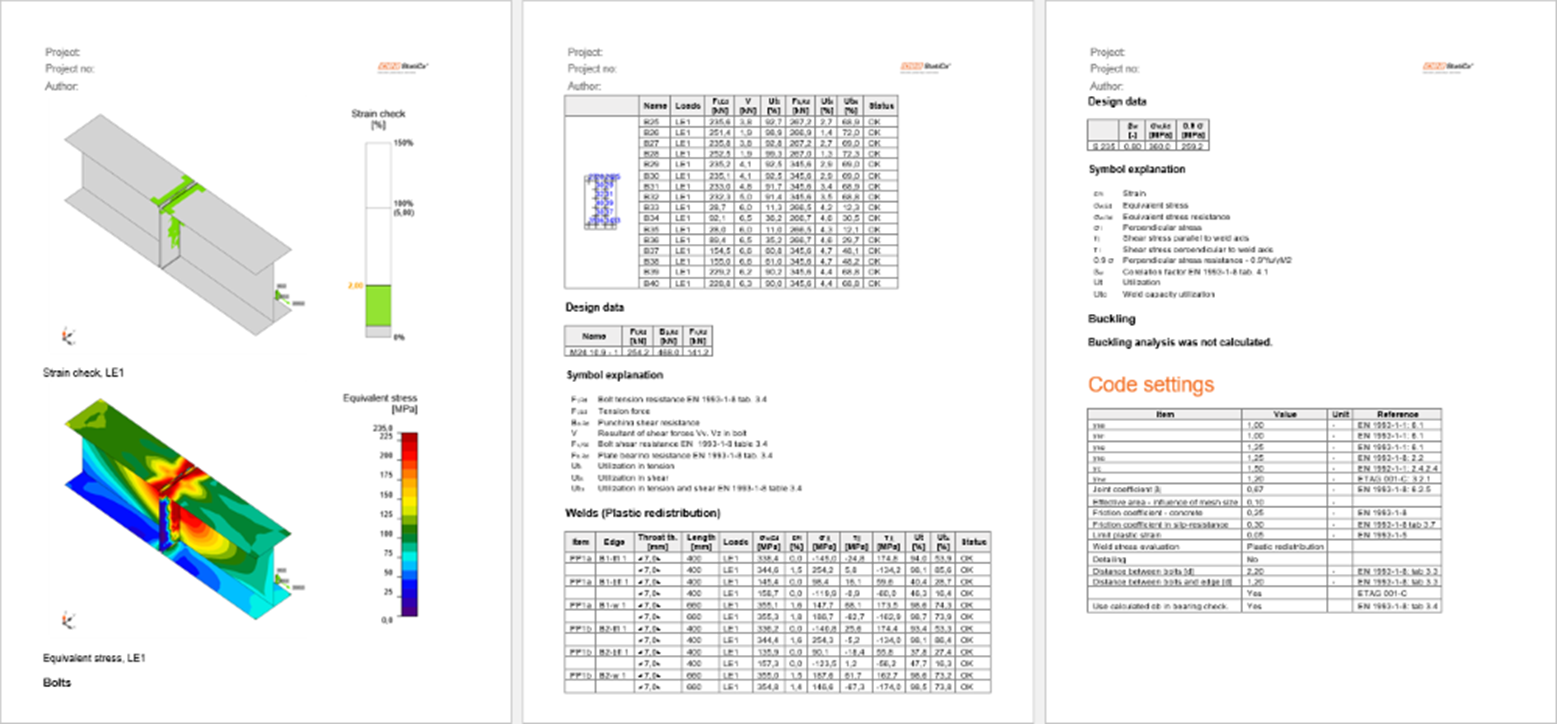 Enfin, vous pouvez revoir le Rapport. IDEA StatiCa offre un rapport complètement personnalisable à imprimer ou enregistrer en format éditable.