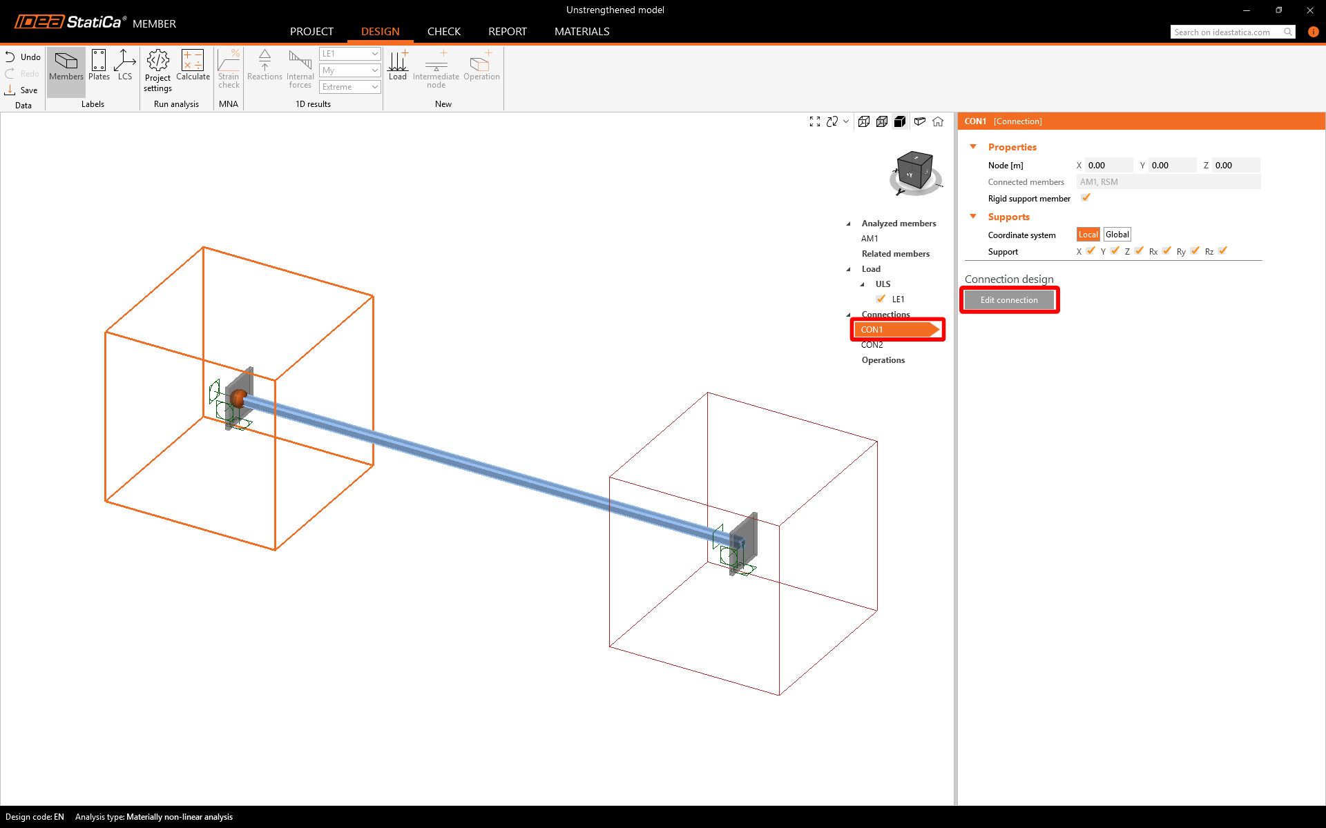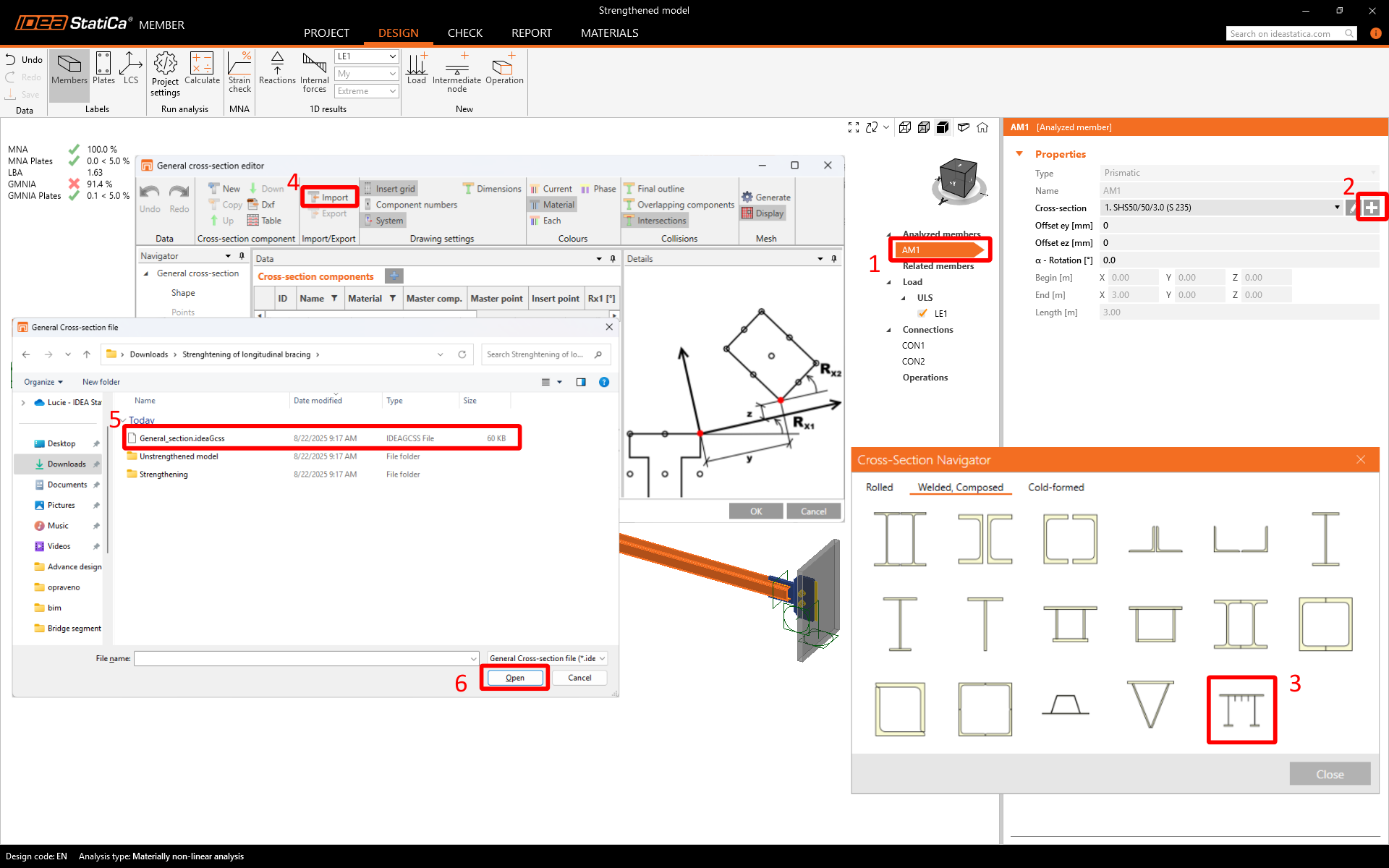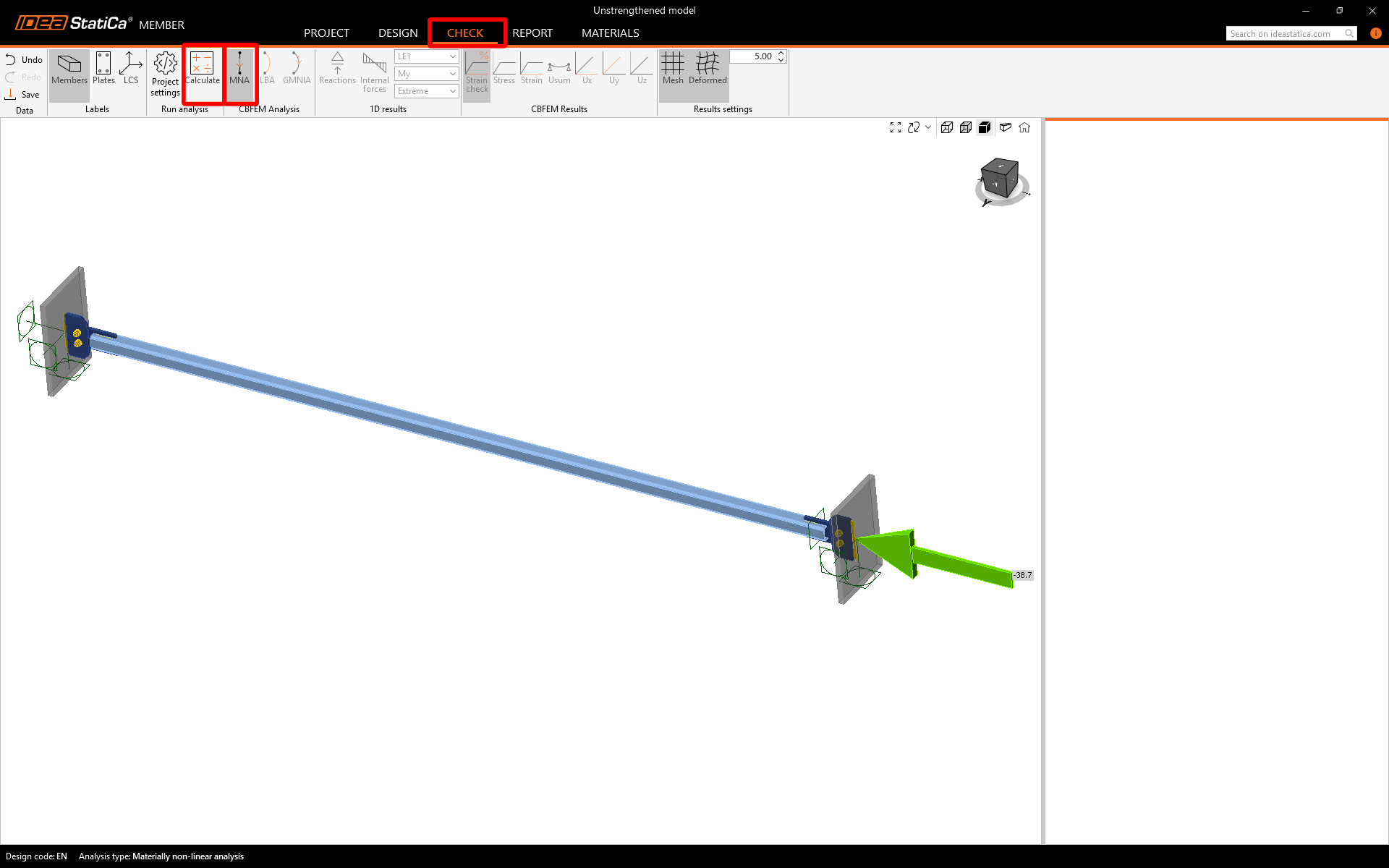 Lancez IDEAStatiCa-->Steel-->Member et ouvrez le modèle qui a été copié.