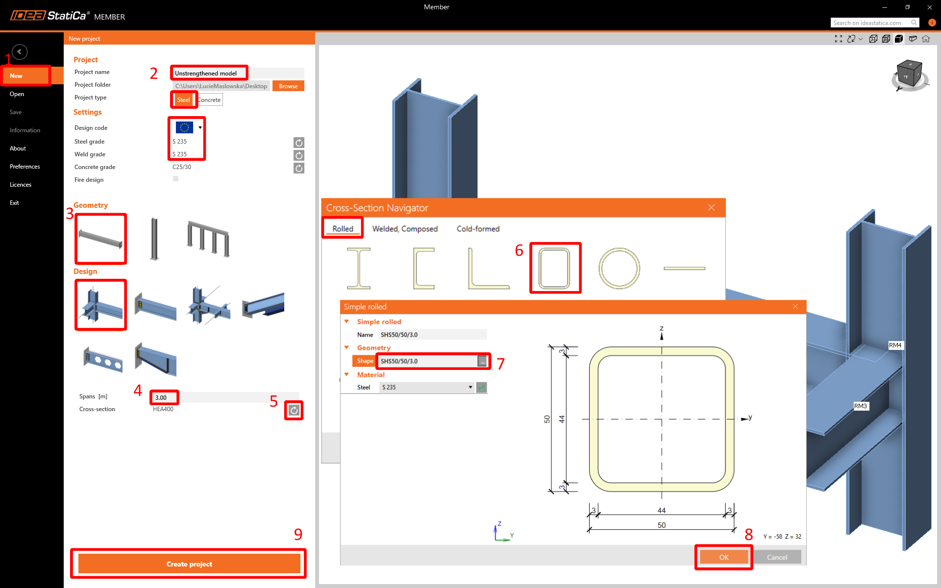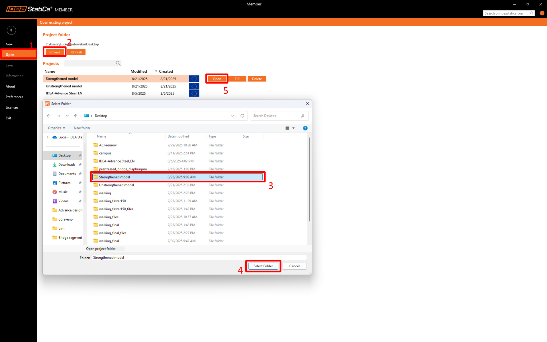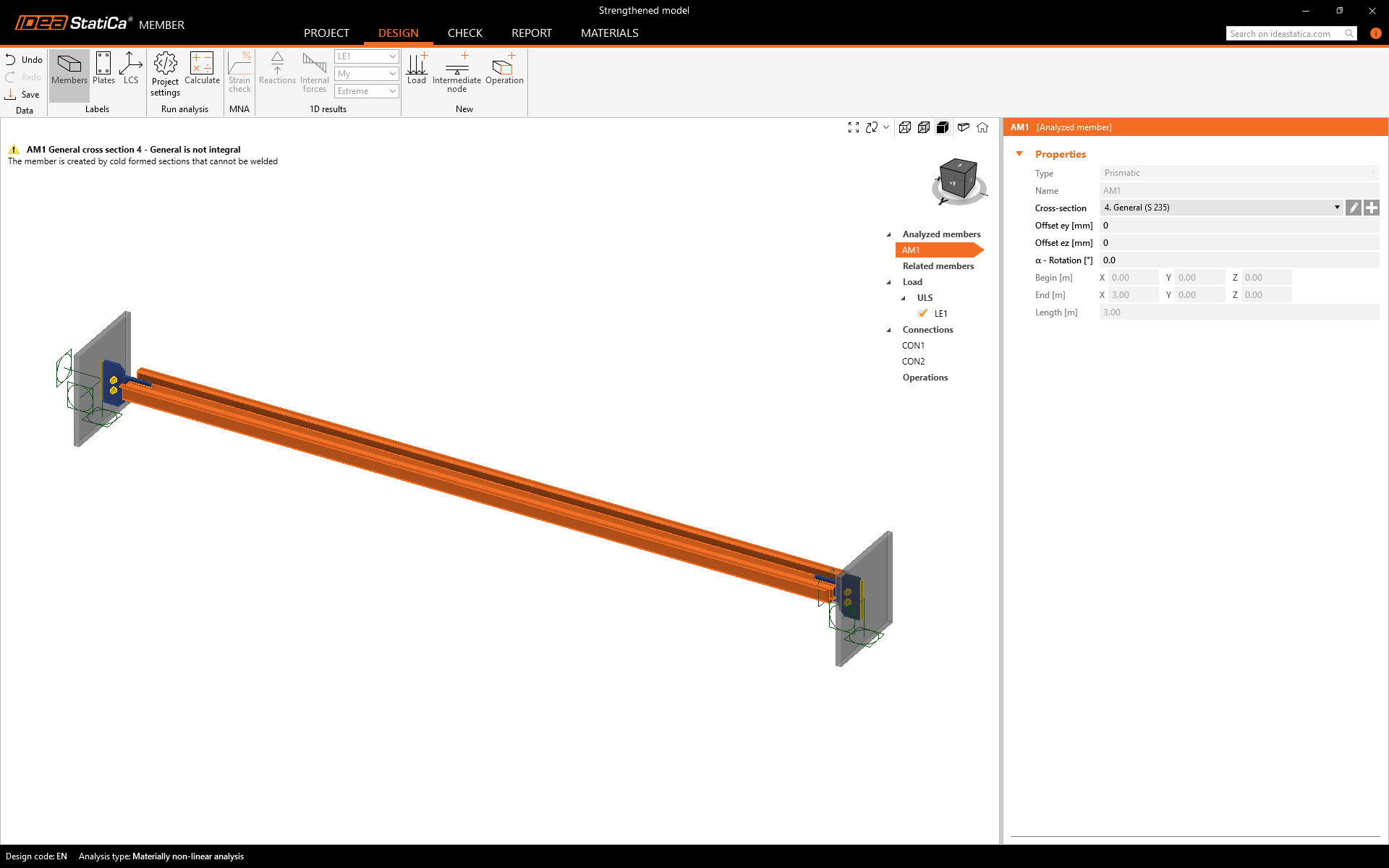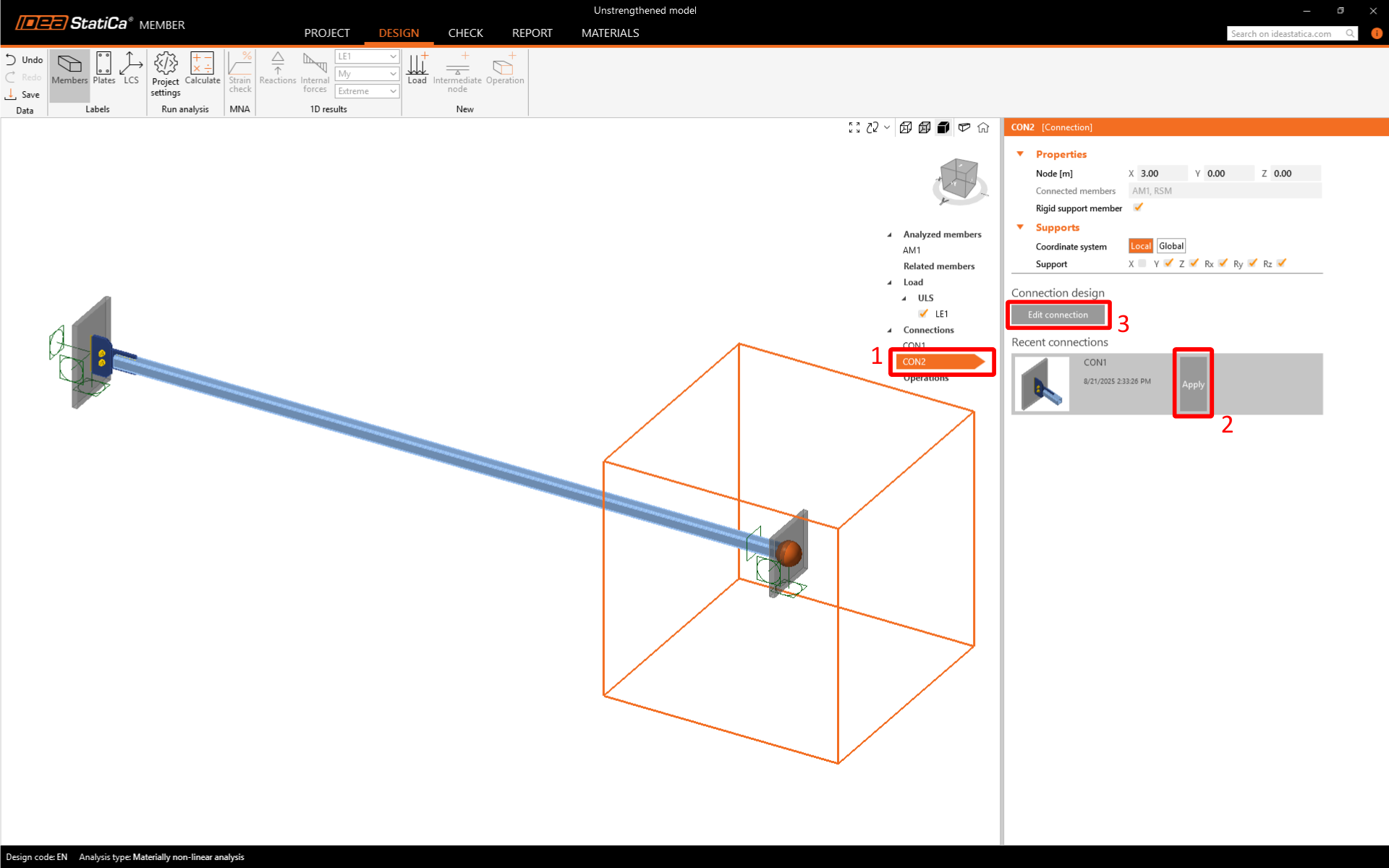Lancez IDEAStatiCa-->Steel-->Member et ouvrez le modèle qui a été copié.