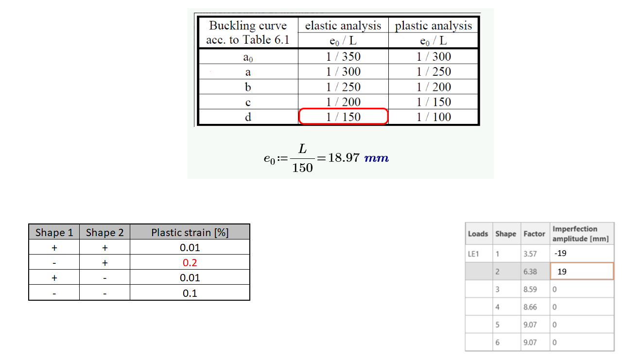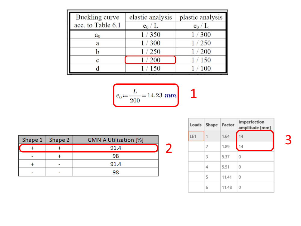Pour commencer avec l'analyse non-linéaire géométrique et matérielle avec imperfection (GMNIA), l'état initial devrait être défini comme l'imperfection locale. Conformément à la norme EN 1993-1-1, Cl. 5.3.2 (3), l'imperfection locale doit être soigneusement choisie. Avant l'introduction des imperfections, une permutation des options avec des signes différents est nécessaire pour sélectionner les imperfections critiques (2). Seules les imperfections qui indiquent une utilisation critique devraient être utilisées pour l'analyse finale (3). Il est important d'être méticuleux lors de la sélection des imperfections pour garantir une analyse précise et fiable.