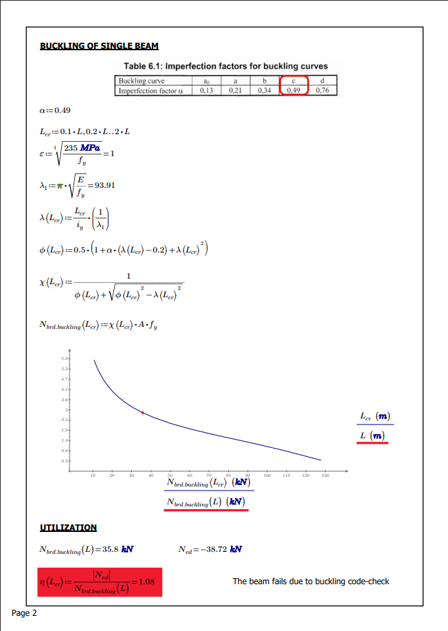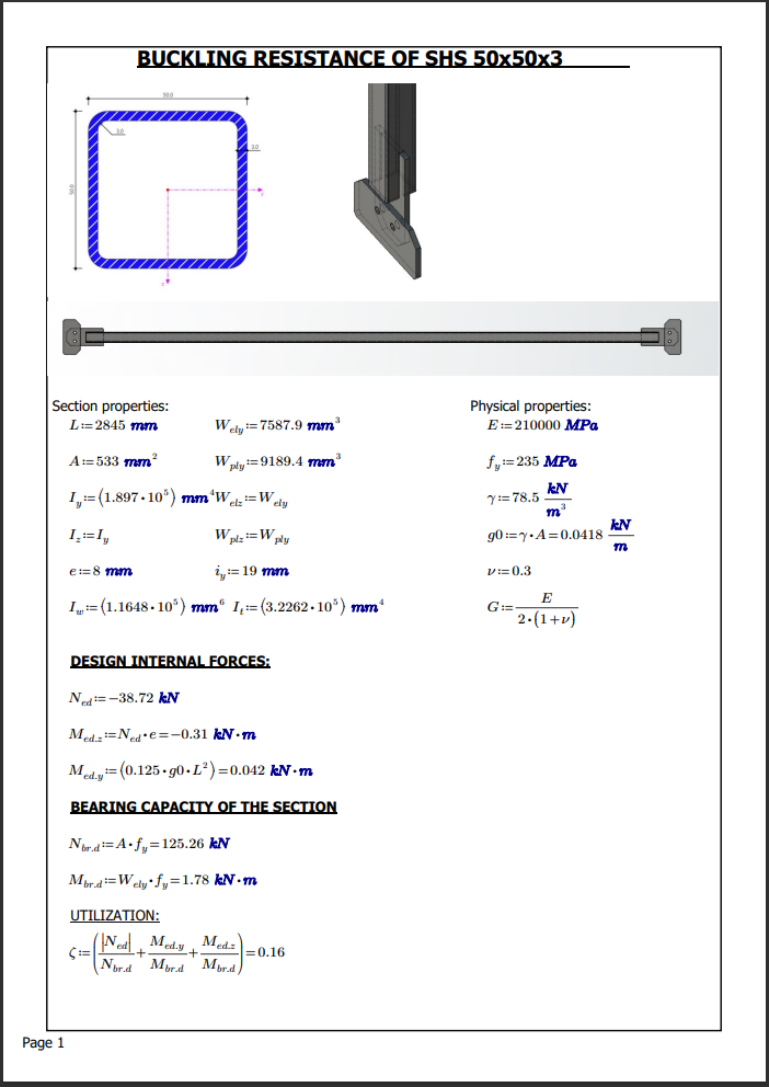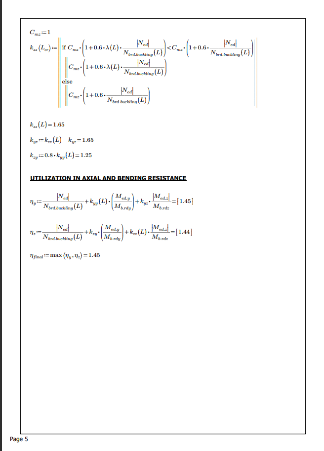 Sur la base de l'approche de calcul manuel, il est évident que la vérification de la stabilité de l'élément sous compression et flexion combinées a échoué. L'utilisation est de 145%.