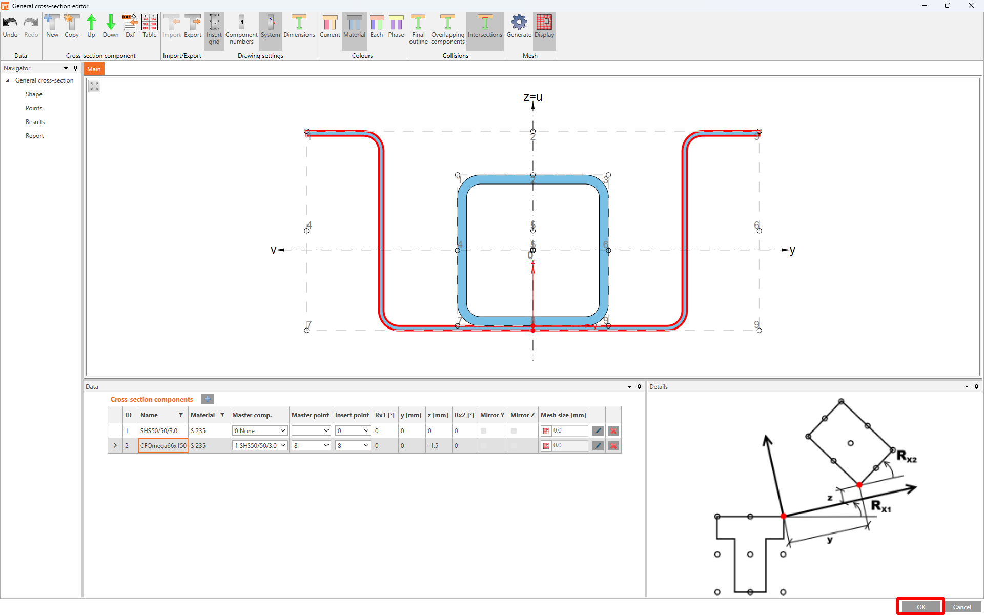 Modifier l'élément analysé AM1(1). Définissez une nouvelle section (2)-->Allez au concepteur de section générale (3)