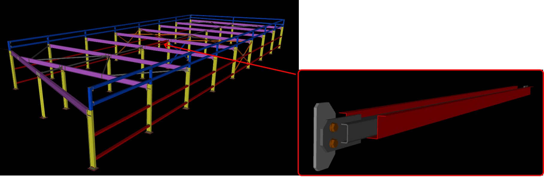 Le modèle ci-dessous montre la structure créée. Cependant, un avertissement crucial est que l'élément comprend des sections formées à froid qui ne peuvent pas être soudées, ce qui signifie que la section ne peut pas être accouplée et l'intégrité n'est pas garantie.