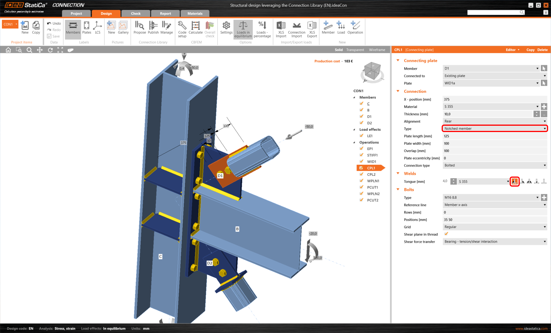 Now, you have successfully created a new connection with help of the Connection Browser Propose feature. Furthermore, you have practiced the creation of manual intermittent weld and a bolt grid with 3 plates involved.