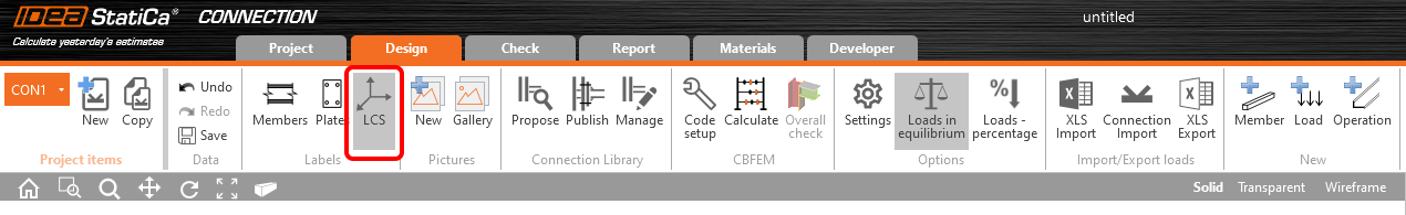 The visibility of the LCS direction can be set in the upper ribbon.