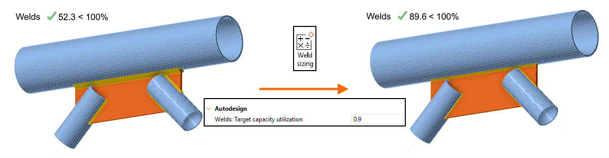 For connection designers, the Automatic Weld Sizing to Capacity Estimation feature provides a powerful advantage. By analyzing the entire connection model, this tool optimizes each weld’s size, ensuring it’s precisely calibrated for the applied loads. Instead of relying on broad assumptions or conservative estimates, designers can make informed decisions about weld dimensions, saving material and fabrication time across the entire structure.