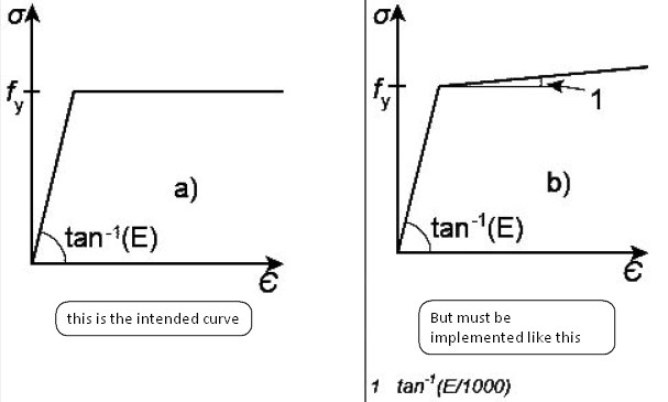A lényeg az, hogy az acéllemez kapacitásának határát nem a folyáshatár feszültség jelenti (pl. S355 acélanyag esetén 355 MPa), hanem az 5%-os képlékeny alakváltozás. Ezt foglalja össze a következő, az EN 1993-1-5 App. C C.2. ábrájából vett kép, amely az építési acél anyag munkagörbéjének ferde felső ágát mutatja (tan-1 E/1000 hajlással).