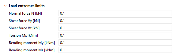 Limits for the Calculate load extremes function are currently not editable and are set to 0.1 for all internal forces.