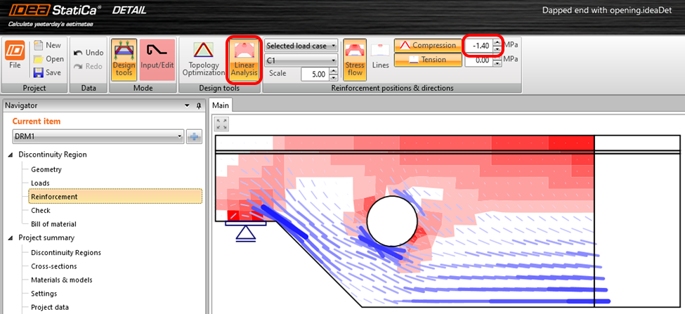 To reinforce this particular model, start with a predefined template in IDEA StatiCa Detail and modify it. Before doing that, you would like to see, how to reinforce it based on design tools results.