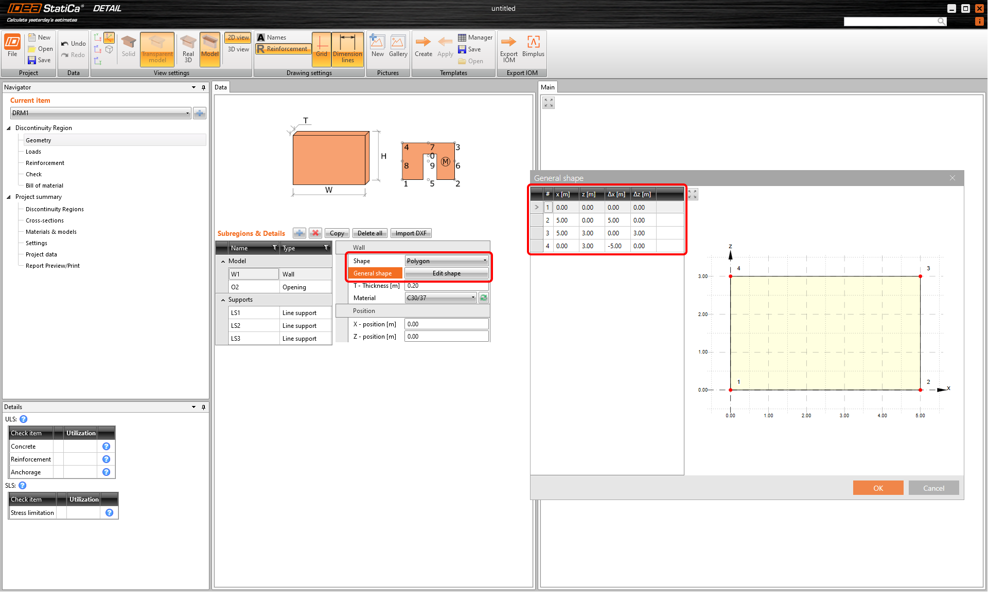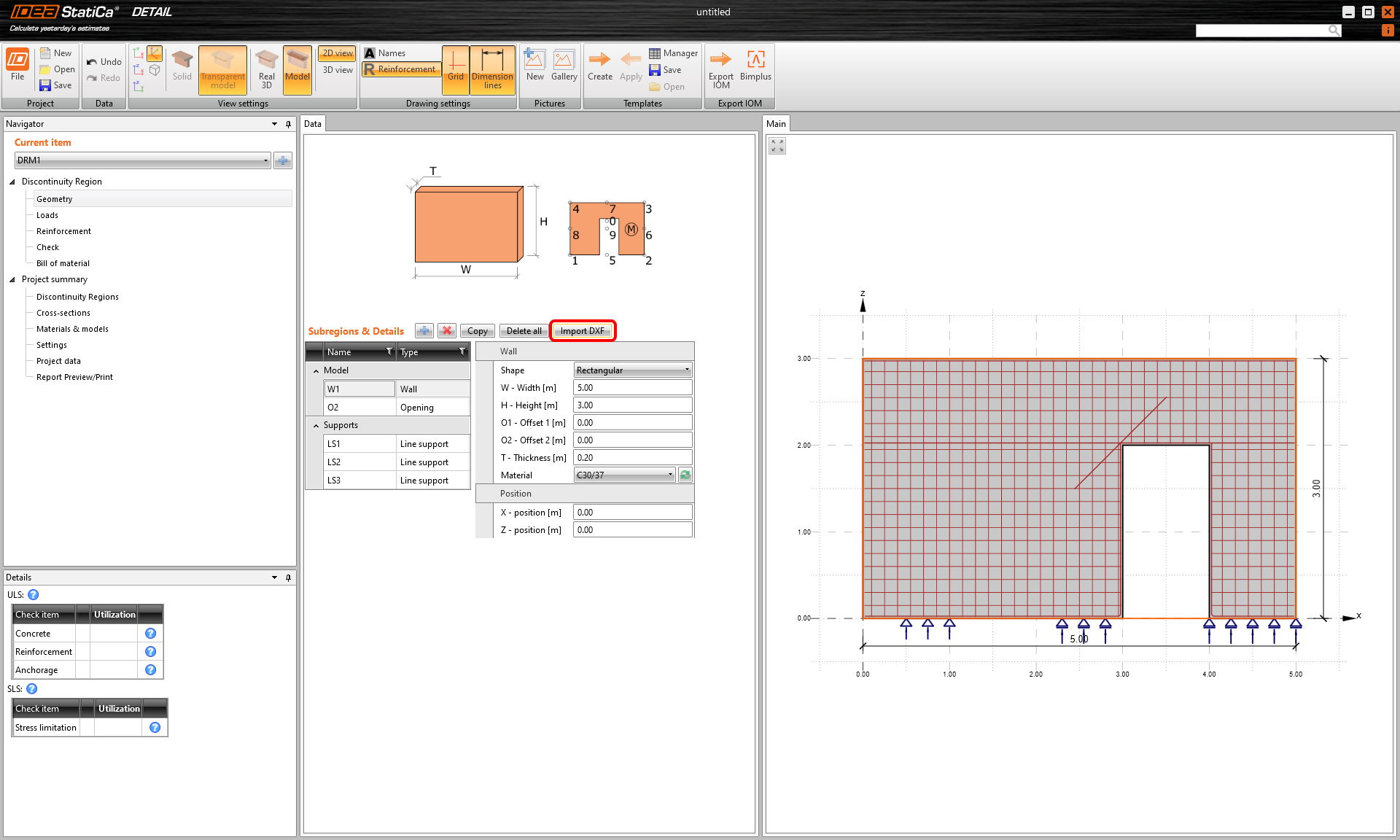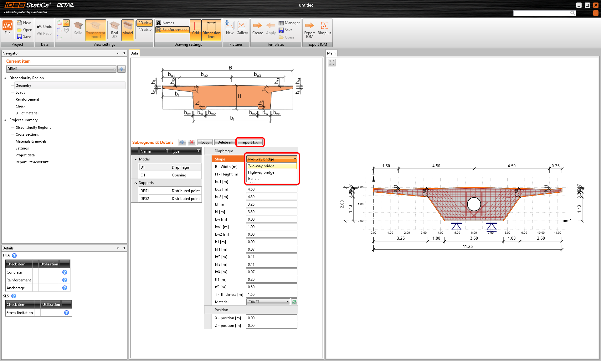 In case of having a complex shape of the structure or already finished drawings, you can use the import from the DXF file functionality to have the geometry defined quickly.