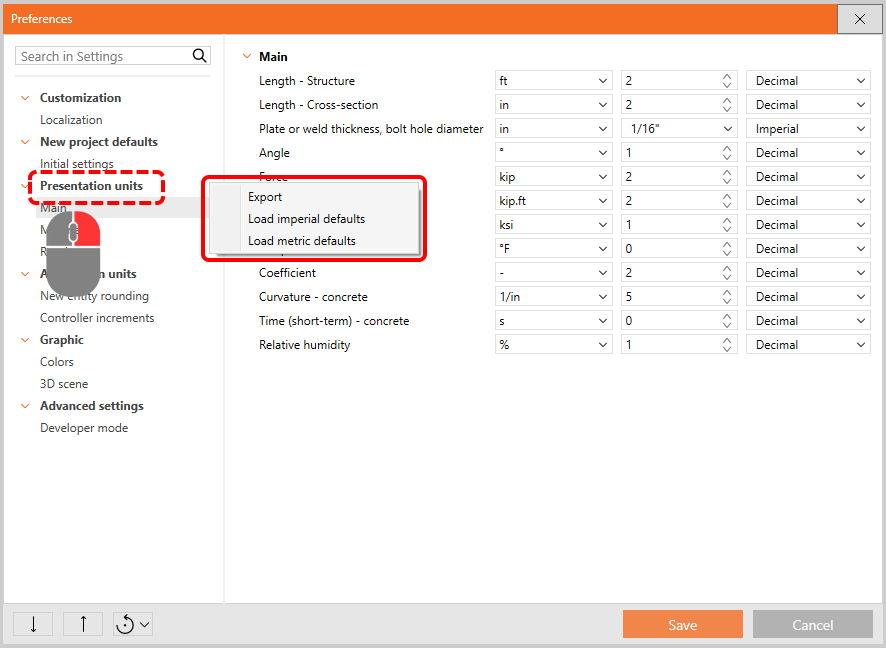 How to change units in IDEA StatiCa