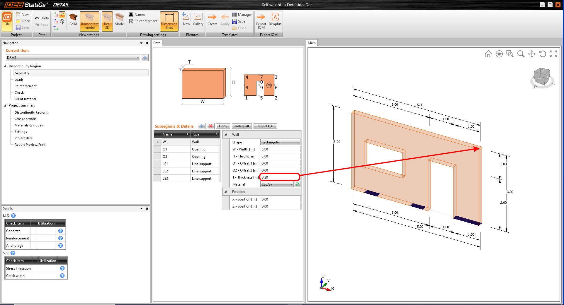 - The thickness is the key dimension for settings of the self-weight.