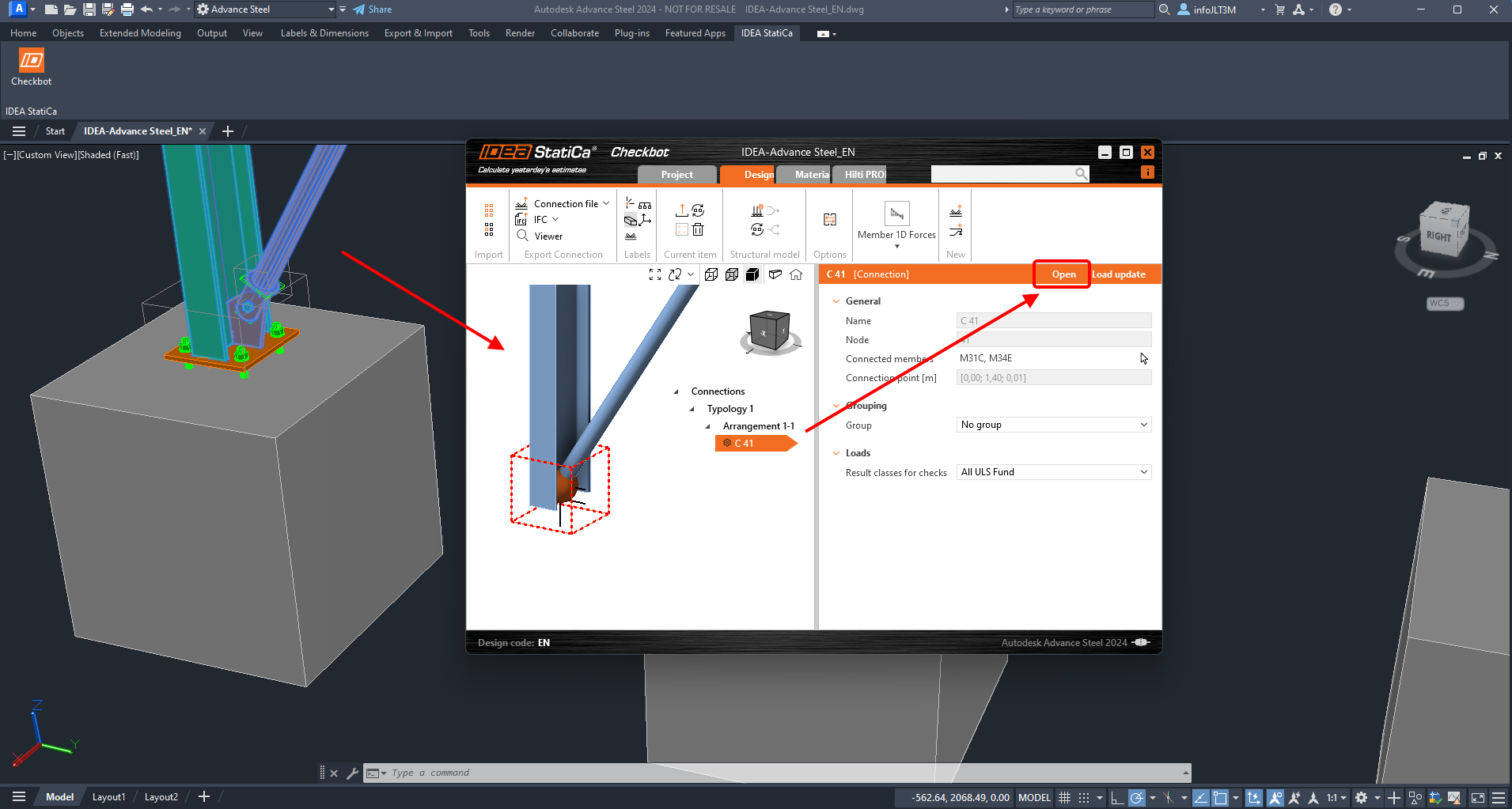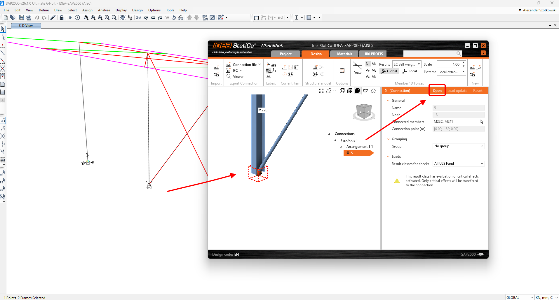 • Select the node you want to design and open it in Connection. This creates a new file in the subfolder "IdeaStatiCa-name_of_FEA_file/Connections/conn-node.ideaCon".