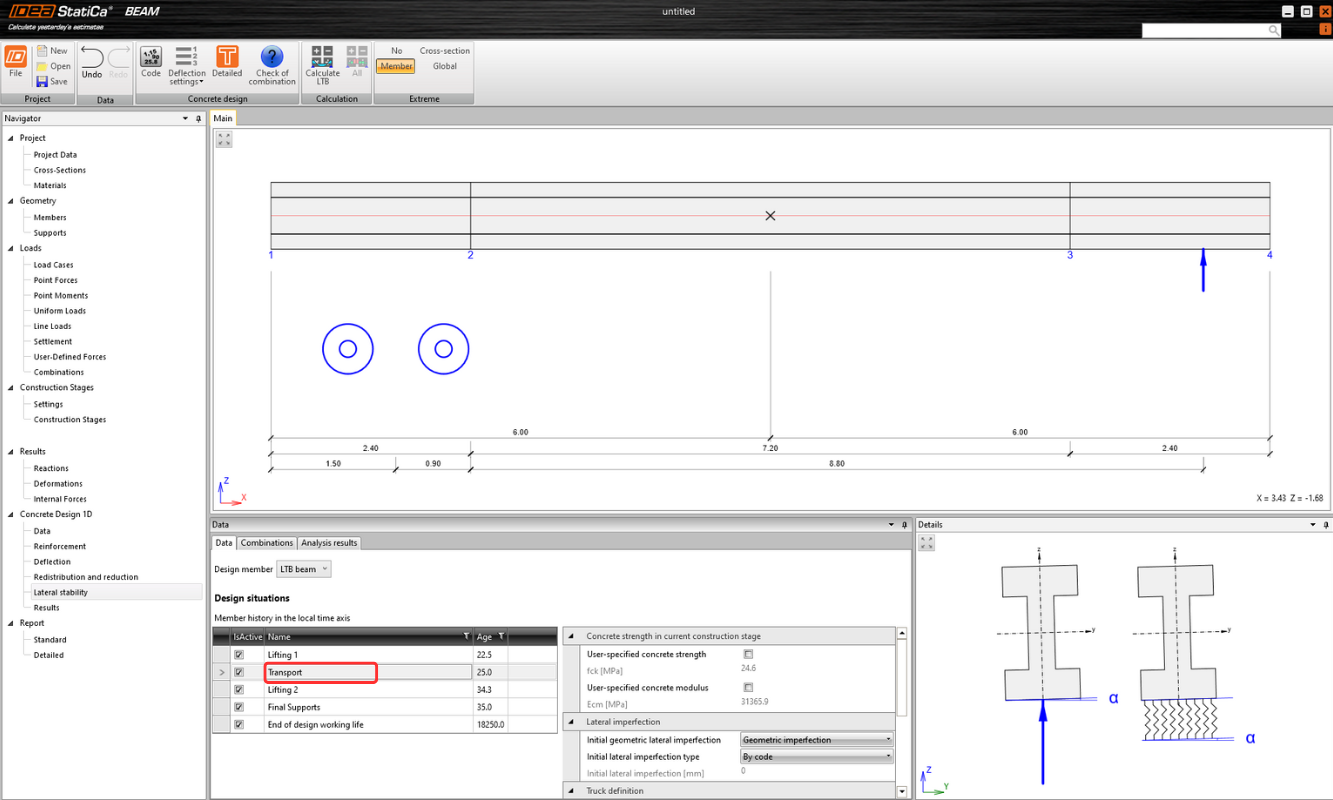 LTB is a stability failure that occurs in slender beams under bending, causing lateral displacement and twisting. It typically affects long and slender prefabricated beams. Checking for LTB is crucial to prevent sudden failure, optimize structural design, and ensure compliance with safety codes. It is essential to verify all construction stages, including lifting and transportation. The solution is suitable for any reinforced concrete and prestressed (pre-tensioned) pre-fabricated concrete beams.