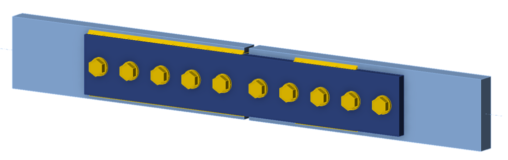 The connection examined in this exercise splices two plate tension members. Pretensioned bolts and welds are used in combination on all faying surfaces. Various weld lengths are examined. For simplicity, the weld length is only adjusted on the right-hand side of the splice connection. The connection was designed such that the strength of bolts and welds controls over that of the member and connecting elements.