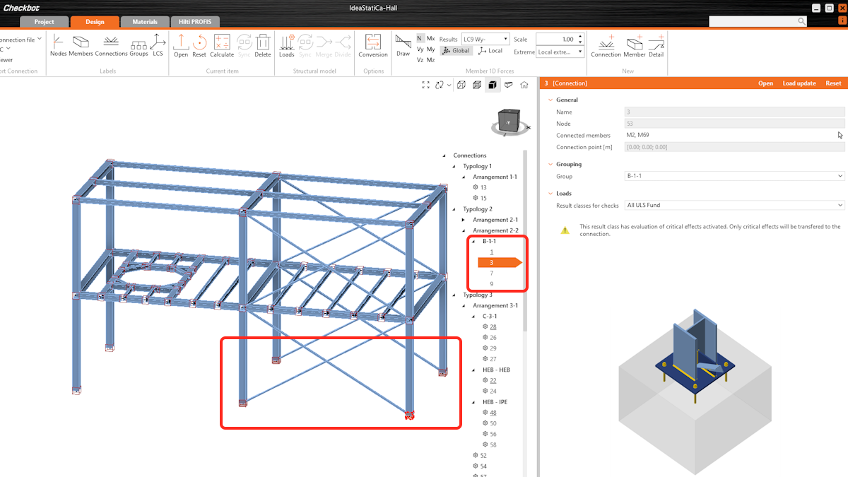 Checkbot provides engineers with a detailed view of connections and links with their BIM, FEA, and CAD software to share their global model. The tools enable quick selection, management, and bulk operations on grouped connections, improving workflow efficiency in large-scale projects.