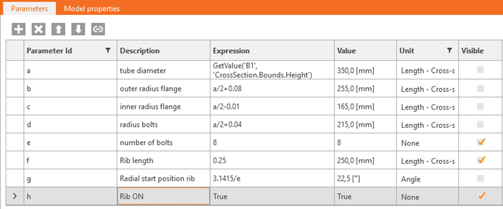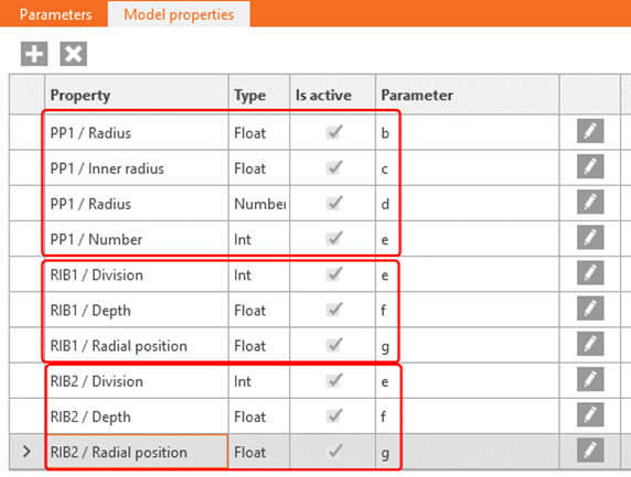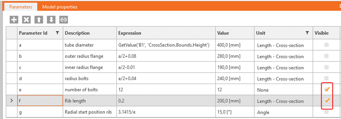 Link this parameter to model property RIB1 / Is Active and RIB2 / Is Active: